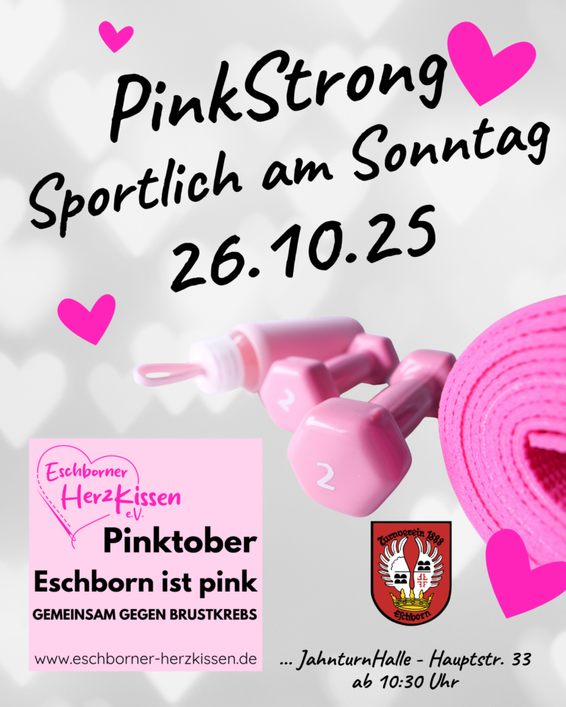 Ob ihr alles mitmacht oder euch eure Lieblingsstunde rauspickt – ihr seid jederzeit herzlich willkommen! Jede Teilnahme setzt ein Zeichen für Bewegung, Gesundheit und Zusammenhalt im Eschborner Pinktober.