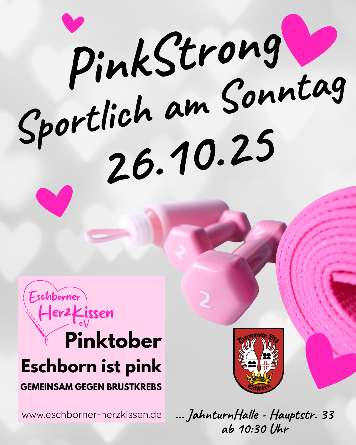 Am 26. Oktober 2025 wird die Jahnturnhalle zur Powerzone! Unter dem Motto „PinkStrong – Sport für Leben“ erwartet euch ein ganzer Tag voller Bewegung, Energie und Gemeinschaft.