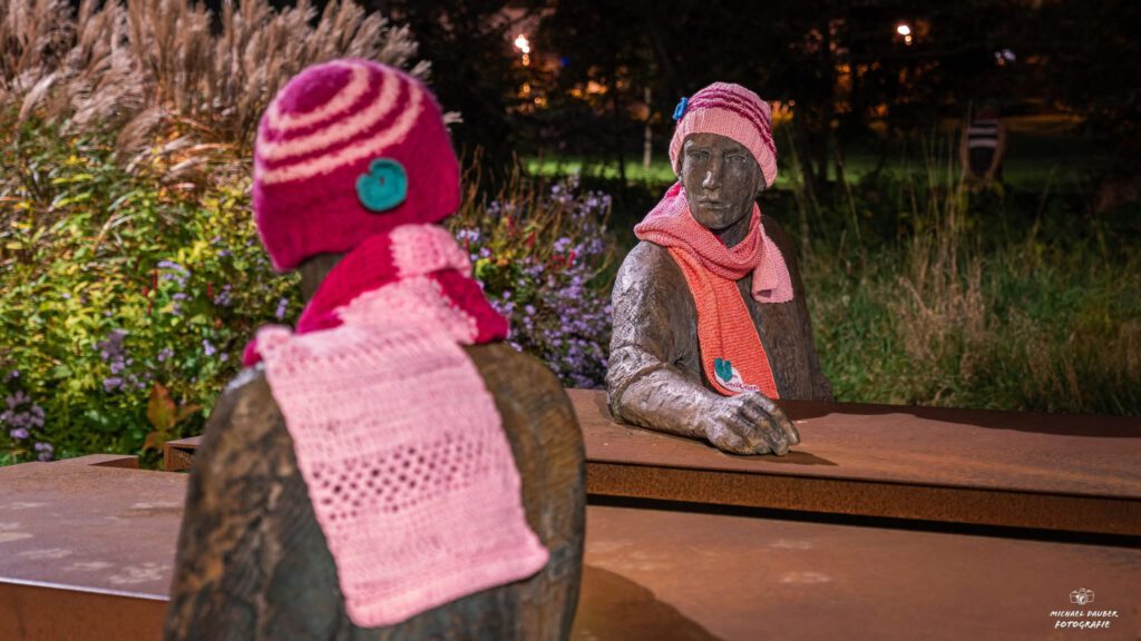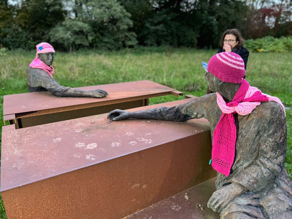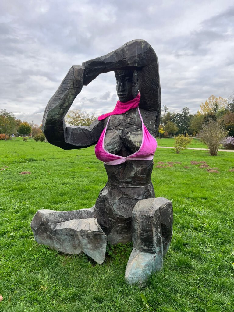 Skulpturen wurden verhüllt, umwickelt, verziert oder neu in Szene gesetzt – natürlich in Pink und mit viel Fantasie. 🔥🧶